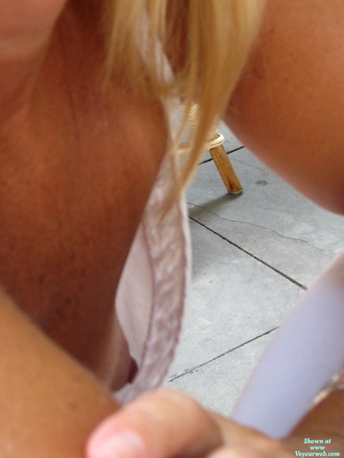 Buff loves to wear tops that give peeks or glimpses if you're lucky enough to have the right angle or catch her at the right time reaching for something creating a gaping opportunity. Buff is small (34 a+/b-) so downblouses provide full breast profiles including clear nipple shots.